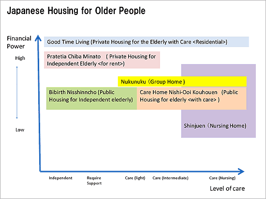 | Kouhouen - Public housing for elderly (with care) visit | Public housing for elderly - Publicly run or enterprises requested by public authority managing commercial housing for older people for rent (with care available) | |